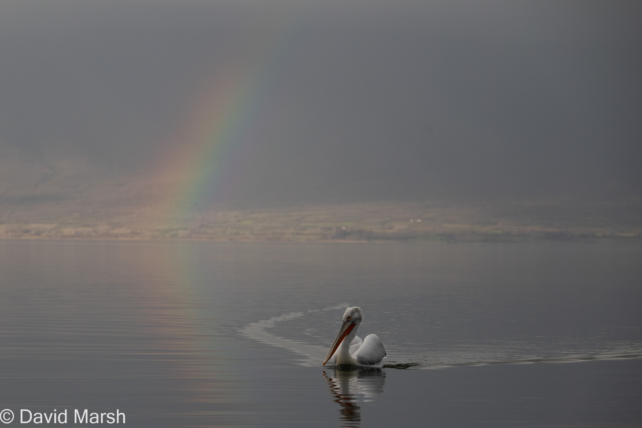 Sean has been running trips to Lake Kerkini for many years, this year hosting four, back to back during January. For one guest it was her fifth trip. Typically it is very cold, with clear skies, but this year, for our few days, it was very different. Rain, mist, fog, gales, storm clouds, rainbow and just the occasional glimpse of the sun. However, it was a bit warmer than usual so I didn’t need all the thermal layers that I had brought.